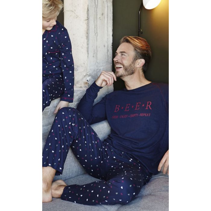Beschrijving / Blauwe herenpyjama bier Pastunette
