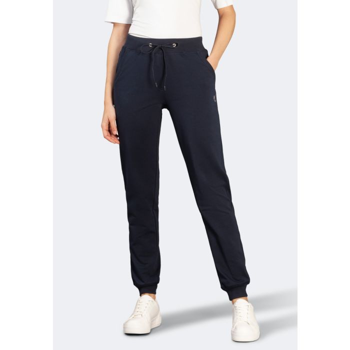 Comfortabele dames vrijetijdsbroek met boorden blauw