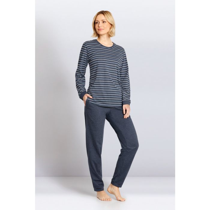 Beschrijving / Hajo dames pyjama blauw met strepen