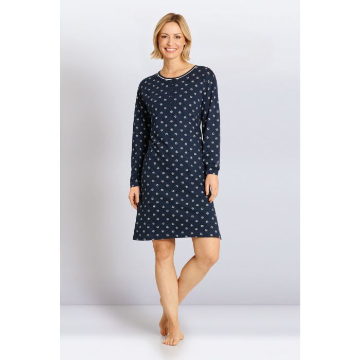 Beschrijving / Hajo nachthemd blauw met all-over print