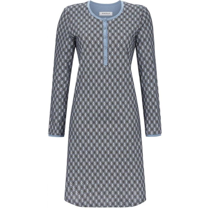 Beschrijving / Katoenen bloemen nachthemd blauw