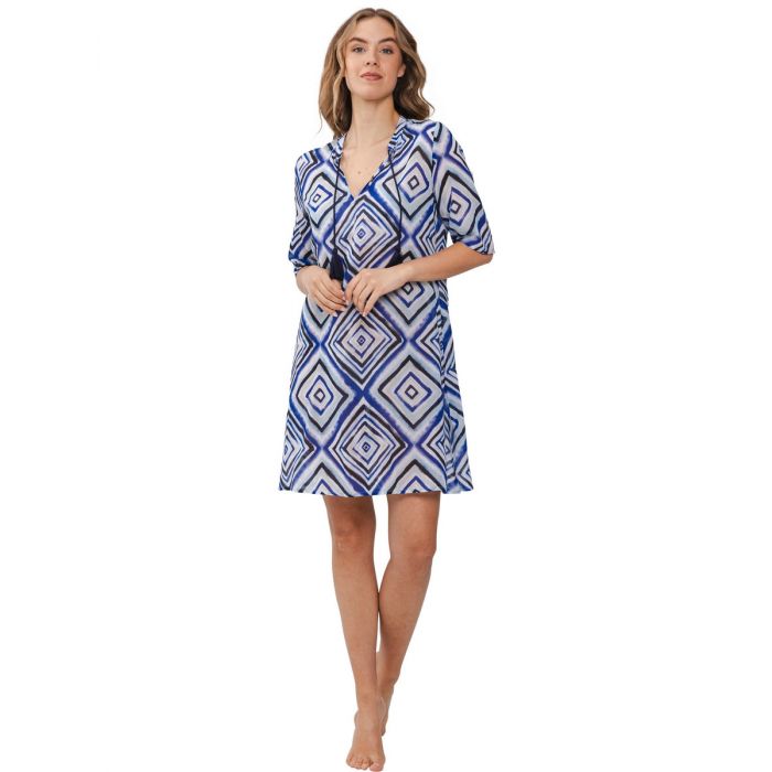 De lengte van een nachthemd of badjas is platliggend gemeten, van de achterste kraag tot de achterste zoom (onderkant) van het nachthemd of badjas in maat 38. De lengtes wijken per maat niet zoveel af.