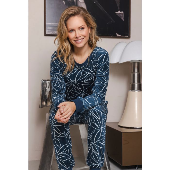 Beschrijving / Marineblauwe fleece pyjama Pastunette