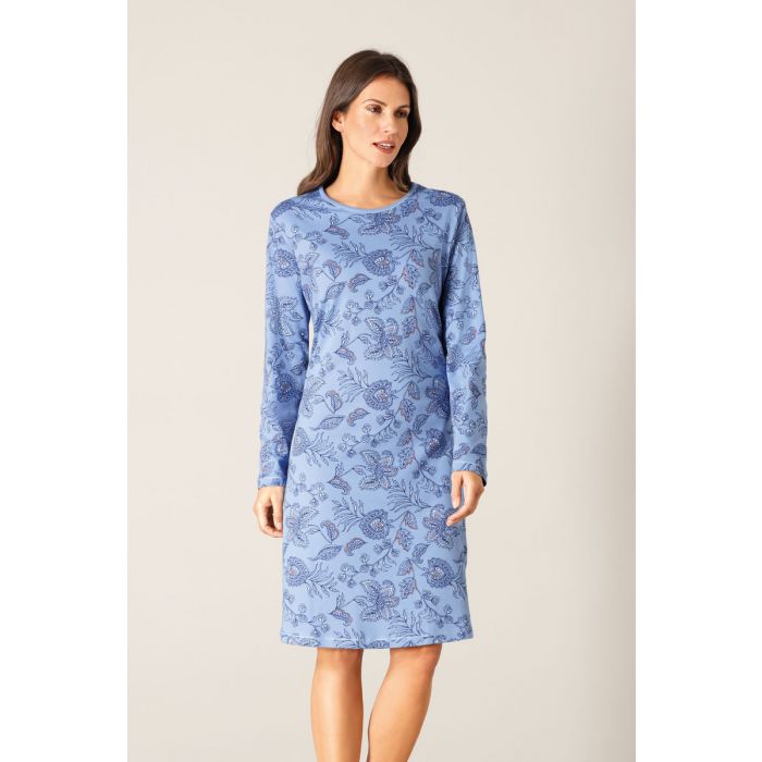 De lengte van een nachthemd of badjas is platliggend gemeten, van de achterste kraag tot de achterste zoom (onderkant) van het nachthemd of badjas in maat 38. De lengtes wijken per maat niet zoveel af.