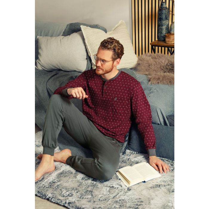 Beschrijving / Warme rode Hajo herenpyjama