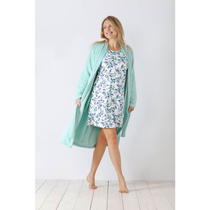 De lengte van een nachthemd of badjas is platliggend gemeten, van de achterste kraag tot de achterste zoom (onderkant) van het nachthemd of badjas in maat 38. De lengtes wijken per maat niet zoveel af.